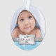 Mes ornements de Noël de photo personnalisés ęr par Noël. Ajoutez votre photo et message. Arrière - plan de bleus layette avec les flocons de neige blancs.