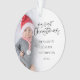 My First Christmas Baby 2 Photos Nom Année Keepsaké Célébrez le premier Noël de votre bébé et un beau souvenir pour Noël à venir aussi. Un script stylé pour My First Christmas et le reste du texte est facile à personnaliser. Remplacez l'échantillon de photo de chaque côté par le vôtre.