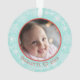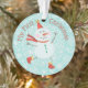 Cet ornement de Noël présente un joli modèle fantaisiste de bonhomme de neige et de flocon de neige avec une fausse parties scintillant d'or. Personnalisez le dos avec le nom, l'année et la photo. Ce modèle fonctionne le mieux avec les photos au format paysage avec le bébé au centre.