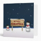 Illustration graphique hivernale montrant deux mignons bonhommes de neige tenant un panneau en bois dans un environnement enneigé. Customisez ce produit avec votre propre texte et image.