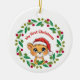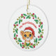 Cet adorable ornement présente un joli guépard encerclé par une couronne de Noël festive ornée de baies saintes. Parfait pour la décoration de Noël d'un bébé, tandis que le design mignon apporte un esprit de vacances joyeux à la célébration du petit.