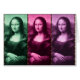 Le chef-d'oeuvre de Da Vinci multiplie par trois (x3), en couleurs de vert, de framboise et de prune violet... avec de minces coulisses verticales de poster de animal.