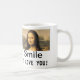 Mona Lisa, "Souriez, je vous aime !" Tasse à café blanc classique. Cette tasse est sûre de leur faire sourire tous les jours.