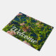 Welcome doormat featuring A Monarch butterfly on a wildflower known as Pink Milkweed.