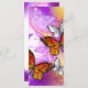 Orange, detailed monarch butterflies on light, purple, picturesque, painted background.