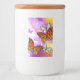 Orange, detailed monarch butterflies on light, purple, picturesque, painted background.