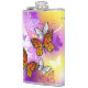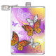 Orange, detailed monarch butterflies on light, purple, picturesque, painted background.