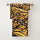 This amazing bath towel set presents a design of lovely Monarch Butterflies (Danaus plexippus) in colours of orange, yellow, gold, black, brown and white. The fabulous markings resemble an artistic abstract pattern. What a wonderful idea for an entomologist or butterfly enthusiast!