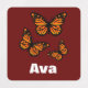 Monarch Butterfly Design - Personalize Name Small Square Dark Red Clothing Label (0.75" x 0.75")