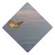 Single butterfly monarch flying upon the ocean by cloudy sunset - 3D render
