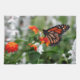 An original fine art photograph by Shelley Neff Design and Photography featuring a monarch butterfly (Danaus plexippus) that is a milkweed butterfly (subfamily Danainae) in the family Nymphalidae sipping nectar from a brilliant orange and red-coloured Lantana. Considered an iconic pollinator species and is also known as milkweed, common tiger, wanderer, and black veined brown butterfly. Its wings feature an easily recognizable black, orange, and white pattern. The eastern North American monarch population is notable for its annual southward late-summer/autumn migration from the United States and southern Canada to Mexico. During the fall migration, monarchs cover thousands of miles, with a corresponding multi-generational return north. The western North American population of monarchs west of the Rocky Mountains often migrates to sites in California but has been found in overwintering Mexican sites as well. Monarchs were transported to the International Space Station and were bred there. Sadly, after a ten-fold drop in the population of the eastern monarch butterfly population over the last decade, a 2016 study predicted an 11%–57% probability that this population will go extinct over the next 20 years. Makes the perfect gift for any butterfly conservationist or nature enthusiast. Looks perfect on any product but especially business cards, postcards, posters, greeting cards, postage stamps, air fresheners, bath mats, door mats, plates, napkins, trivets, stickers, tiles, buttons, magnets, photographic or canvas prints and can be personalized by adding your name or other text by choosing 'Customize It'. Please contact us directly if you need assistance with customization or would like to see this image on a different product. To see all other products in our store matching this design go to http://www.zazzle.com/sneffygirl* and click on the ‘Butterflies > Monarch Butterfly on Orange and Red Lantana’ category. Thanks for your interest!
