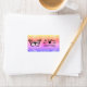 This chic address label design features a black illustration of a monarch butterfly with white splashes and white flourish accents on a rainbow background of yellow, pink, blue and purple.. To the right of the butterfly is your family name in a modern handwritten font and address for you to personalize. Makes the perfect gift for nature and butterfly lovers. Designed by artist © Tim Coffey.