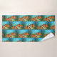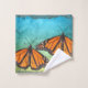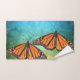 Monarch Butterfly Towel Set in green and blue with orange butterflies.