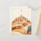 This travel postcard, in modern digital illustration style, inspired by the landscape of city of Monastir, Tunisia.