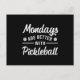 This funny pickleball design for men and women who loves to play pickleball. Show that you are pickleball player. On the pickleball players motive is the quote Mondays Are Better With Pickleball.