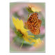 Fritillary Butterfly visite les fleurs jaunes de la marguerite Coreopsis avec les couleurs du jardin tout autour.