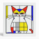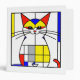 Abstract colourful geometric Mondrian style illustration of a cat with white, yellow, grey and red squares and black lines