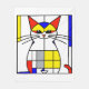 Abstract colourful geometric Mondrian style illustration of a cat with white, yellow, grey and red squares and black lines