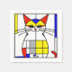 Abstract colourful geometric Mondrian style illustration of a cat with white, yellow, grey and red squares and black lines