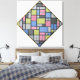 ----------------------------------------------------------------------------------𝑷𝒊𝒆𝒕 𝑴𝒐𝒏𝒅𝒓𝒊𝒂𝒏 (𝟏𝟖𝟕𝟐-𝟏𝟗𝟒𝟒) - 𝑪𝑶𝑴𝑷𝑶𝑺𝑰𝑻𝑰𝑶𝑵 𝑾𝑰𝑻𝑯 𝑮𝑹𝑰𝑫 𝟔: 𝑳𝒐𝒛𝒆𝒏𝒈𝒆 𝑪𝒐𝒎𝒑𝒐𝒔𝒊𝒕𝒊𝒐𝒏 𝒘𝒊𝒕𝒉 𝑪𝒐𝒍𝒐𝒓𝒔 - 𝟏𝟗𝟏𝟗 - 𝑫𝒆 𝑺𝒕𝒊𝒋𝒍 (𝑵𝒆𝒐𝒑𝒍𝒂𝒔𝒕𝒊𝒄𝒊𝒔𝒎), 𝑮𝒆𝒐𝒎𝒆𝒕𝒓𝒊𝒄 𝑨𝒃𝒔𝒕𝒓𝒂𝒄𝒕𝒊𝒐𝒏 - 𝑶𝒊𝒍 𝒐𝒏 𝒄𝒂𝒏𝒗𝒂𝒔 - 𝑯𝒊-𝑹𝒆𝒔 𝑫𝒊𝒈𝒊𝒕𝒂𝒍𝒍𝒚 𝑹𝒆𝒎𝒂𝒔𝒕𝒆𝒓𝒆𝒅 𝑽𝒆𝒓𝒔𝒊𝒐𝒏 ---------------------------------------------------------------------𝑷𝒊𝒆𝒕 𝑴𝒐𝒏𝒅𝒓𝒊𝒂𝒏'𝒔 "𝑪𝒐𝒎𝒑𝒐𝒔𝒊𝒕𝒊𝒐𝒏 𝒘𝒊𝒕𝒉 𝑮𝒓𝒊𝒅 𝟔: 𝑳𝒐𝒛𝒆𝒏𝒈𝒆 𝑪𝒐𝒎𝒑𝒐𝒔𝒊𝒕𝒊𝒐𝒏 𝒘𝒊𝒕𝒉 𝑪𝒐𝒍𝒐𝒓𝒔" (𝟏𝟗𝟏𝟗) 𝒊𝒔 𝒂 𝒑𝒊𝒗𝒐𝒕𝒂𝒍 𝒑𝒊𝒆𝒄𝒆 𝒊𝒏 𝒉𝒊𝒔 𝒔𝒆𝒓𝒊𝒆𝒔 𝒐𝒇 𝒘𝒐𝒓𝒌𝒔 𝒌𝒏𝒐𝒘𝒏 𝒂𝒔 "𝑪𝒐𝒎𝒑𝒐𝒔𝒊𝒕𝒊𝒐𝒏𝒔 𝒘𝒊𝒕𝒉 𝑮𝒓𝒊𝒅," 𝒄𝒓𝒆𝒂𝒕𝒆𝒅 𝒃𝒆𝒕𝒘𝒆𝒆𝒏 𝟏𝟗𝟏𝟖 𝒂𝒏𝒅 𝟏𝟗𝟐𝟏. 𝑻𝒉𝒊𝒔 𝒔𝒆𝒓𝒊𝒆𝒔 𝒊𝒔 𝒎𝒂𝒓𝒌𝒆𝒅 𝒃𝒚 𝒂 𝒈𝒓𝒊𝒅 𝒐𝒇 𝒕𝒘𝒆𝒍𝒗𝒆 𝒉𝒐𝒓𝒊𝒛𝒐𝒏𝒕𝒂𝒍 𝒂𝒏𝒅 𝒕𝒘𝒆𝒍𝒗𝒆 𝒗𝒆𝒓𝒕𝒊𝒄𝒂𝒍 𝒃𝒍𝒂𝒄𝒌 𝒍𝒊𝒏𝒆𝒔, 𝒇𝒐𝒓𝒎𝒊𝒏𝒈 𝟏𝟒𝟒 𝒔𝒒𝒖𝒂𝒓𝒆𝒔 𝒂𝒏𝒅 𝒓𝒆𝒄𝒕𝒂𝒏𝒈𝒍𝒆𝒔 𝒕𝒉𝒂𝒕 𝒂𝒓𝒆 𝒕𝒉𝒆𝒏 𝒇𝒊𝒍𝒍𝒆𝒅 𝒘𝒊𝒕𝒉 𝒑𝒓𝒊𝒎𝒂𝒓𝒚 𝒄𝒐𝒍𝒐𝒓𝒔 (𝒓𝒆𝒅, 𝒚𝒆𝒍𝒍𝒐𝒘, 𝒂𝒏𝒅 𝒃𝒍𝒖𝒆) 𝒂𝒏𝒅 𝒘𝒉𝒊𝒕𝒆. 𝑻𝒉𝒆 𝒖𝒔𝒆 𝒐𝒇 𝒃𝒍𝒂𝒄𝒌 𝒍𝒊𝒏𝒆𝒔 𝒆𝒔𝒕𝒂𝒃𝒍𝒊𝒔𝒉𝒆𝒔 𝒂 𝒇𝒐𝒖𝒏𝒅𝒂𝒕𝒊𝒐𝒏𝒂𝒍 𝒔𝒕𝒓𝒖𝒄𝒕𝒖𝒓𝒆, 𝒂𝒅𝒅𝒊𝒏𝒈 𝒐𝒓𝒅𝒆𝒓 𝒂𝒏𝒅 𝒃𝒂𝒍𝒂𝒏𝒄𝒆 𝒕𝒐 𝒕𝒉𝒆 𝒄𝒐𝒎𝒑𝒐𝒔𝒊𝒕𝒊𝒐𝒏. 𝑪𝒓𝒊𝒕𝒊𝒄𝒔 𝒊𝒏𝒕𝒆𝒓𝒑𝒓𝒆𝒕 𝒕𝒉𝒆 𝒃𝒍𝒂𝒄𝒌 𝒍𝒊𝒏𝒆𝒔 𝒂𝒔 𝒓𝒆𝒑𝒓𝒆𝒔𝒆𝒏𝒕𝒊𝒏𝒈 𝒕𝒉𝒆 𝒂𝒃𝒔𝒆𝒏𝒄𝒆 𝒐𝒇 𝒄𝒐𝒍𝒐𝒓, 𝒔𝒚𝒎𝒃𝒐𝒍𝒊𝒛𝒊𝒏𝒈 𝒖𝒏𝒊𝒗𝒆𝒓𝒔𝒂𝒍𝒊𝒕𝒚 𝒂𝒏𝒅 𝒔𝒑𝒊𝒓𝒊𝒕𝒖𝒂𝒍𝒊𝒕𝒚 𝒊𝒏 𝑴𝒐𝒏𝒅𝒓𝒊𝒂𝒏'𝒔 𝒂𝒓𝒕. 𝑰𝒏 𝒕𝒉𝒊𝒔 𝒔𝒑𝒆𝒄𝒊𝒇𝒊𝒄 𝒑𝒂𝒊𝒏𝒕𝒊𝒏𝒈, 𝑴𝒐𝒏𝒅𝒓𝒊𝒂𝒏 𝒅𝒆𝒗𝒊𝒂𝒕𝒆𝒔 𝒇𝒓𝒐𝒎 𝒖𝒔𝒊𝒏𝒈 𝒔𝒒𝒖𝒂𝒓𝒆𝒔, 𝒆𝒎𝒑𝒍𝒐𝒚𝒊𝒏𝒈 𝒍𝒐𝒛𝒆𝒏𝒈𝒆𝒔 𝒃𝒚 𝒓𝒐𝒕𝒂𝒕𝒊𝒏𝒈 𝒔𝒒𝒖𝒂𝒓𝒆𝒔 𝟒𝟓 𝒅𝒆𝒈𝒓𝒆𝒆𝒔, 𝒊𝒏𝒕𝒓𝒐𝒅𝒖𝒄𝒊𝒏𝒈 𝒂 𝒅𝒚𝒏𝒂𝒎𝒊𝒄 𝒊𝒏𝒕𝒆𝒓𝒑𝒍𝒂𝒚 𝒐𝒇 𝒉𝒐𝒓𝒊𝒛𝒐𝒏𝒕𝒂𝒍 𝒂𝒏𝒅 𝒗𝒆𝒓𝒕𝒊𝒄𝒂𝒍 𝒍𝒊𝒏𝒆𝒔. 𝑹𝒆𝒅, 𝒚𝒆𝒍𝒍𝒐𝒘, 𝒃𝒍𝒖𝒆, 𝒈𝒓𝒂𝒚, 𝒂𝒏𝒅 𝒘𝒉𝒊𝒕𝒆 𝒂𝒓𝒆 𝒔𝒕𝒓𝒂𝒕𝒆𝒈𝒊𝒄𝒂𝒍𝒍𝒚 𝒑𝒍𝒂𝒄𝒆𝒅 𝒘𝒊𝒕𝒉𝒊𝒏 𝒕𝒉𝒆 𝒍𝒐𝒛𝒆𝒏𝒈𝒆𝒔, 𝒐𝒇𝒕𝒆𝒏 𝒃𝒊𝒔𝒆𝒄𝒕𝒆𝒅 𝒅𝒊𝒂𝒈𝒐𝒏𝒂𝒍𝒍𝒚, 𝒄𝒓𝒆𝒂𝒕𝒊𝒏𝒈 𝒂 𝒗𝒊𝒔𝒖𝒂𝒍𝒍𝒚 𝒔𝒕𝒊𝒎𝒖𝒍𝒂𝒕𝒊𝒏𝒈 𝒆𝒇𝒇𝒆𝒄𝒕. 𝑾𝒉𝒊𝒕𝒆 𝒔𝒒𝒖𝒂𝒓𝒆𝒔 𝒂𝒄𝒕 𝒂𝒔 𝒃𝒖𝒇𝒇𝒆𝒓𝒔, 𝒆𝒏𝒉𝒂𝒏𝒄𝒊𝒏𝒈 𝒃𝒂𝒍𝒂𝒏𝒄𝒆 𝒂𝒏𝒅 𝒓𝒉𝒚𝒕𝒉𝒎 𝒕𝒉𝒓𝒐𝒖𝒈𝒉𝒐𝒖𝒕 𝒕𝒉𝒆 𝒄𝒐𝒎𝒑𝒐𝒔𝒊𝒕𝒊𝒐𝒏. "𝑪𝒐𝒎𝒑𝒐𝒔𝒊𝒕𝒊𝒐𝒏 𝒘𝒊𝒕𝒉 𝑮𝒓𝒊𝒅 𝟔" 𝒔𝒕𝒂𝒏𝒅𝒔 𝒐𝒖𝒕 𝒊𝒏 𝒕𝒉𝒆 𝒔𝒆𝒓𝒊𝒆𝒔 𝒅𝒖𝒆 𝒕𝒐 𝒕𝒉𝒆 𝒊𝒏𝒄𝒐𝒓𝒑𝒐𝒓𝒂𝒕𝒊𝒐𝒏 𝒐𝒇 𝒍𝒐𝒛𝒆𝒏𝒈𝒆𝒔, 𝒃𝒓𝒊𝒏𝒈𝒊𝒏𝒈 𝒂 𝒔𝒆𝒏𝒔𝒆 𝒐𝒇 𝒎𝒐𝒗𝒆𝒎𝒆𝒏𝒕 𝒂𝒏𝒅 𝒅𝒚𝒏𝒂𝒎𝒊𝒔𝒎 𝒕𝒉𝒂𝒕 𝒄𝒐𝒏𝒕𝒓𝒂𝒔𝒕𝒔 𝒘𝒊𝒕𝒉 𝒕𝒉𝒆 𝒔𝒕𝒂𝒕𝒊𝒄 𝒒𝒖𝒂𝒍𝒊𝒕𝒚 𝒐𝒇 𝒔𝒒𝒖𝒂𝒓𝒆𝒔 𝒂𝒏𝒅 𝒓𝒆𝒄𝒕𝒂𝒏𝒈𝒍𝒆𝒔 𝒊𝒏 𝒐𝒕𝒉𝒆𝒓 𝒑𝒂𝒊𝒏𝒕𝒊𝒏𝒈𝒔. 𝑻𝒉𝒆 𝒂𝒓𝒕𝒘𝒐𝒓𝒌 𝒆𝒙𝒆𝒎𝒑𝒍𝒊𝒇𝒊𝒆𝒔 𝑴𝒐𝒏𝒅𝒓𝒊𝒂𝒏'𝒔 𝒑𝒖𝒓𝒔𝒖𝒊𝒕 𝒐𝒇 𝒖𝒏𝒊𝒗𝒆𝒓𝒔𝒂𝒍 𝒐𝒓𝒅𝒆𝒓 𝒂𝒏𝒅 𝒃𝒂𝒍𝒂𝒏𝒄𝒆 𝒕𝒉𝒓𝒐𝒖𝒈𝒉 𝒈𝒆𝒐𝒎𝒆𝒕𝒓𝒊𝒄 𝒇𝒐𝒓𝒎𝒔 𝒂𝒏𝒅 𝒑𝒓𝒊𝒎𝒂𝒓𝒚 𝒄𝒐𝒍𝒐𝒓𝒔, 𝒆𝒎𝒃𝒐𝒅𝒚𝒊𝒏𝒈 𝒕𝒉𝒆 𝒑𝒓𝒊𝒏𝒄𝒊𝒑𝒍𝒆𝒔 𝒐𝒇 𝑵𝒆𝒐𝒑𝒍𝒂𝒔𝒕𝒊𝒄𝒊𝒔𝒎. 𝑻𝒉𝒊𝒔 𝒑𝒊𝒆𝒄𝒆 𝒊𝒔 𝒂 𝒕𝒆𝒔𝒕𝒂𝒎𝒆𝒏𝒕 𝒕𝒐 𝑴𝒐𝒏𝒅𝒓𝒊𝒂𝒏'𝒔 𝒂𝒃𝒊𝒍𝒊𝒕𝒚 𝒕𝒐 𝒄𝒐𝒏𝒗𝒆𝒚 𝒑𝒓𝒐𝒇𝒐𝒖𝒏𝒅 𝒄𝒐𝒏𝒄𝒆𝒑𝒕𝒔