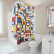 Neoplasticism art with black bold lines and red, yellow and blue squares & rectangles.