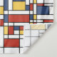 Neoplasticism art with black bold lines and red, yellow and blue squares & rectangles.