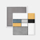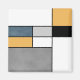 Abstract modern art with colourful (navy blue, grey, black, yellow, white) rectangles in Mondrian style on white background