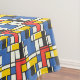 An abstract, geometric, and brightly coloured print in blue, yellow, red, and black squares, rectangles and lines creates a tablecloth that you will love! Reminiscent of Piet Mondrian's style, this is a retro look with a modern update that's sure to please!