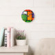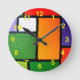 Mondrian Style Orange Green Blue Fuzzy Abstract Round Clock