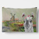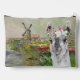 Beautiful and artistic women's makeup bag features Claude Monet's CHAMP TULIPES EN HOLLANDE as background with portrait of adorable llama with watercolor floral crown overlay.