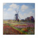 Monet Field of Tulips with Windmill tile. Oil painting on canvas from 1886. One of Monet’s most colourful works painted around the Rijnsburg Windmill. The tulip fields are bursting with reds, whites, yellows and greens. A beautiful landscape painting that makes a great gift for fans of Claude Monet, tulips, impressionism, windmills, and French art.