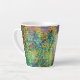 Latte Mug featuring Claude Monet’s oil painting The Artist's Garden at Vétheuil (1880). Sunflowers and other beautiful blue and red flowers line a garden path where children are taking a pleasant stroll. A great gift for fans of impressionism and French art.