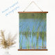 Inspired by Monet, this wood topped hanging tapestry was created with reflections of cattail reeds along the water's edge. Photography of Nature's blue and green in a waterscape gives this wall art a natural and fresh appeal.