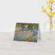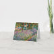 Monet Irises note card. Oil painting on canvas from 1900. Along with his famous water lilies, Monet frequently repainted the purple irises in his garden at Giverny. The soft use of purple flows nicely along the garden path with trees in the background. A great gift for fans of Monet, impressionism, irises and French art.