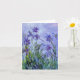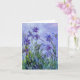 Monet Lilac Irises note card. Oil painting on canvas from 1917. Monet painted irises throughout his career, this is one of his final iris paintings and certainly one of his most haunting. The work is heavily impressionistic and the dark purple irises almost seem to be floating in water above their dark green foliage, the sky above is soft blue and purple. A beautiful gift for fans of Claude Monet, Impressionism, iris paintings and French art.