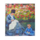 Notepad featuring Claude Monet’s oil painting Camille Monet and a Child in the Artist’s Garden in Argenteuil (1875). A woman and kid dressed in blue sew and read in a garden of red and white flowers. A great Monet gift for fans of impressionism and French art.