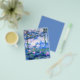 A Monet pink water lilies flyer featuring beautiful pink water lilies floating in a calm blue pond with lily pads. A great Monet gift for fans of impressionism and French art. Serene nature impressionism with lovely flowers and scenic pond landscape.