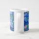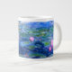 A Monet pink water lilies specialty mug featuring beautiful pink water lilies floating in a calm blue pond with lily pads. A great Monet gift for fans of impressionism and French art. Serene nature impressionism with lovely flowers and scenic pond landscape.