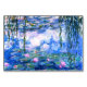 A Monet pink water lilies table card featuring beautiful pink water lilies floating in a calm blue pond with lily pads. A great Monet gift for fans of impressionism and French art. Serene nature impressionism with lovely flowers and scenic pond landscape.