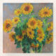 Glass Coaster featuring Claude Monet’s oil painting Bouquet of Sunflowers (1881). Beautiful sunflowers in a blue vase atop a red table. A great gift for fans of impressionism and French art.