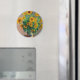 Magnet featuring Claude Monet’s oil painting Bouquet of Sunflowers (1881). Beautiful sunflowers in a blue vase atop a red table. A great gift for fans of impressionism and French art.