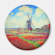 Magnet featuring Claude Monet’s flower and windmill painting. Beautiful and colourful fields of red, pink, and yellow tulips next to a windmill and house in Holland. A great Monet gift for fans of impressionism and French art.