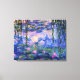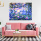 Claude Monet was one of the founders of French Impressionism painting in outdoor landscapes. This is one of his many garden water lily pond paintings showing the reflection from the sky above, with weeping willow branches hanging down over the pond, and the lily flowers floating in the water.