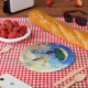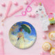 Paper Plates featuring Claude Monet’s wife, Camille, holding a green parasol while her blue veil is blown by the wind in a green and golden field. A great Monet gift for fans of impressionism and French art.