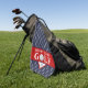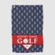 This red white and navy blue golf towel was designed especially for golfers who enjoy playing a money game. Covered in a pattern of dollar signs over a navy blue background, a wide red band has the words "Money Game Golf". Personalize the monogram with your desired initials. This golf towel makes a nice gift idea for Father's Day, birthday, Christmas, retirement, promotion, new job and a host of other special occasions as well as every day.