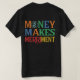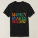 This t-shirt is a celebration of fun! The phrase "Money Makes Merriment" pops in a variety of colours, with each word a different vibrant hue. It's a playful design that conveys the joy that financial security can bring.