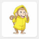 Monkey at Raining with Raincoat Square Sticker