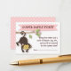 A fun game for you to include in the baby shower invitation that welcomes guests to be entered into a raffle, if they bring a package of diapers along with them to the baby shower. Cute little monkey girl baby hangs playfully from a flowering branch. Pastel baby pink and white colour scheme will coordinate with just about any baby girl shower invitation too.