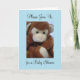 This is an adorable little monkey on a baby blue background. A sweet invitation to a baby shower!