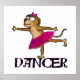 Funny cartoon monkey ballet dancer wearing a tutu and a fancy pink bow. Original digital cartoon art by Taylor Addams.